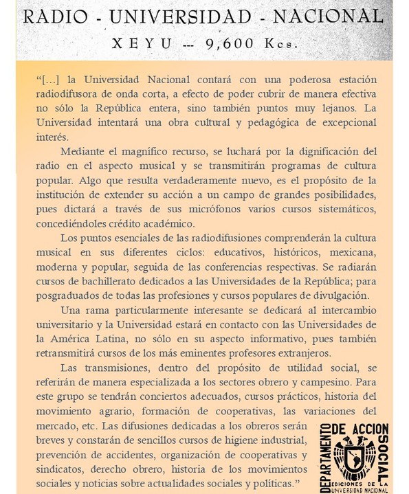 -“Radio Universidad Nacional. XEYU 9,600 KCS”, Universidad. Mensual de Cultura Popular, México, Número 13, Tomo III, Febrero de 1937.