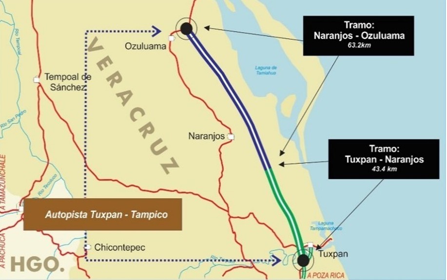 Con el objetivo de impulsar la economía y el turismo en la región norte del estado de Veracruz se terminó de construir, después de cinco años del otorgamiento de su concesión, la autopista de altas especificaciones Tuxpan-Tampico en su tramo Tuxpan-Ozuluama. El 3 de noviembre de 2014 la Secretaría de Comunicaciones y Transportes otorgó la concesión para construir, explotar, operar, conservar y mantener dicha autopista que forma parte del corredor Veracruz-Monterrey con ramal a Matamoros, y cruza los municipios de Tuxpan, Álamo, Tamiahua, Naranjos, Tamalín, Tantima y Ozuluama de Mascareñas. Se incluyó en la concesión el derecho de vía, sus servicios auxiliares y actividades establecidas, y su vigencia es de 30 años a partir del inicio de operaciones.