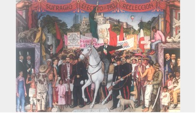En Retablo de la Revolución (1968), Juan O’Gorman recuperó el lema “Sufragio efectivo, No reelección”, catalizador de todas las fuerzas revolucionarias.