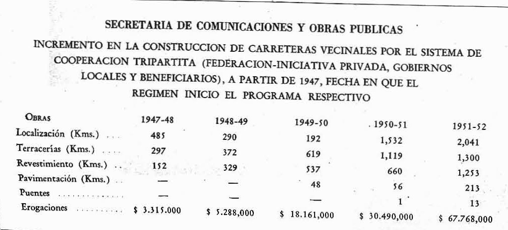 De esta forma, los años treinta del siglo XX fueron trascendentes en el desarrollo de los caminos nacionales, pues el gobierno federal estableció que para construirlos debía adoptarse un Acuerdo de Cooperación entre los estados, lo cual determinó la apertura de caminos “modestos” que enlazaran a todos los pueblos, rancherías, comunidades agrarias y pequeños poblados que entonces estaban incomunicados y alejados de los caminos de la red troncal.