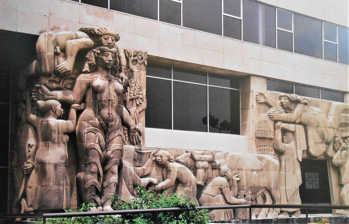 Para cerrar el triángulo perfecto que supone el logro de la integración plástica que une en armonía a la arquitectura, pintura y escultura, el Arq. Carlos Lazo, secretario de Comunicaciones y Obras Públicas (1952-1955), invitó a los destacados escultores Francisco Zúñiga y Rodrigo Arenas Betancourt a dejar huella de su talento participando en la magna obra del Centro SCOP.