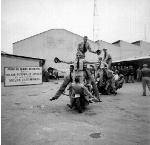 Pedro Infante y Luis Aguilar protagonizaron en 1951 la película A Toda Máquina donde interpretan a un par de policías de tránsito, que se luce en actos acrobáticos montados en sus máquinas de acero. Cabe recordar aquí que en 1935 surgió la primera Hermandad de Motociclistas, conformada por motociclistas acróbatas de la Dirección General de Tránsito del D.F. y de la Policía Federal de Caminos: "Hermandad de Motociclistas de Tránsito de la República Mexicana y Policía Federal de Caminos.6