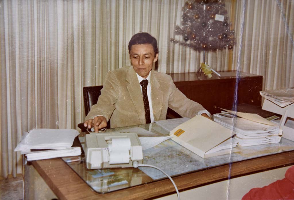 Octubre de 1969 fue la fecha cuando el contador Arteaga adquirió una plaza de la SCOP mediante la firma de su respectivo contrato que hasta la fecha ha seguido vigente. “Ingresé con el contador y jefe de departamento y me dijo ‘aquí me hace falta un auxiliar administrativo que me haga todo lo de los trámites, que vaya a entregar los oficios y también vas a hacer mi despacho, yo lo quiero limpio’, aunque había servicio de limpieza con trabajadores que pertenecían en ese tiempo a la Secretaría.”